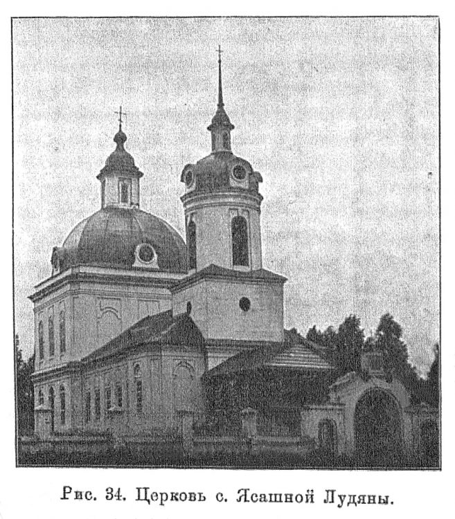 ЦГАКО ф.574 оп.1 д.1064 л.30. На фото: церковь в селе Ясашная Лудяна Нолинского уезда первого благочинного округа (ныне в руинированном состоянии)