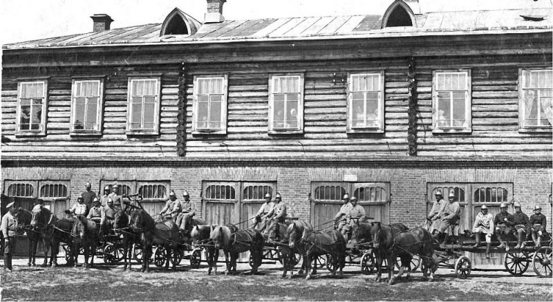 На фото: 4-я пожарная часть города Вятки. Находилась на углу улиц Комсомольской и бывшей К. Либкнехта (в настоящее время район ДК железнодорожников). Открытие части состоялось 15 апреля 1923 года. Также улица в районе расположения части была названа «Пожарной». В настоящее время это улица Азина (источник: www.gtrk-vyatka.ru/vesti/soci...)