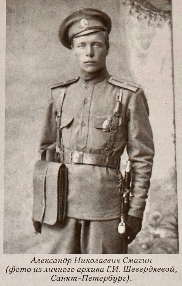 Смагин Михаил Николаевич, 06.09.1896-? сын купца Николая Васильевича Смагина. В 1914 г. поступил в офицерскую школу и после ее окончания отправлен в действующую армию. В 1919 г. вернулся в Сарапул. С армией Колчака отступал на Восток. В эмиграции жил сначала в Китае, в г.Харбине, затем переехал в Америку, в г.Сан-Франциско.