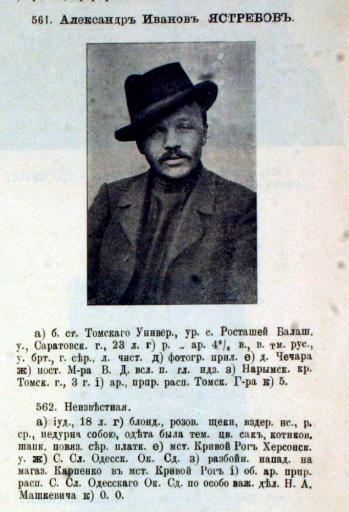 История в лицах. Из общероссийского "розыскного листка" 1906 года. Политический сыск неблагонадежных для государства граждан. Такие описания рассылались после Первой русской революции по всем отделениям полиции и жандармерии. В сокращениях под снимком разобраться сложно, но можно... Ниже еще описание неизвестной, уже без фото. Источник: архив ГА РМЭ
