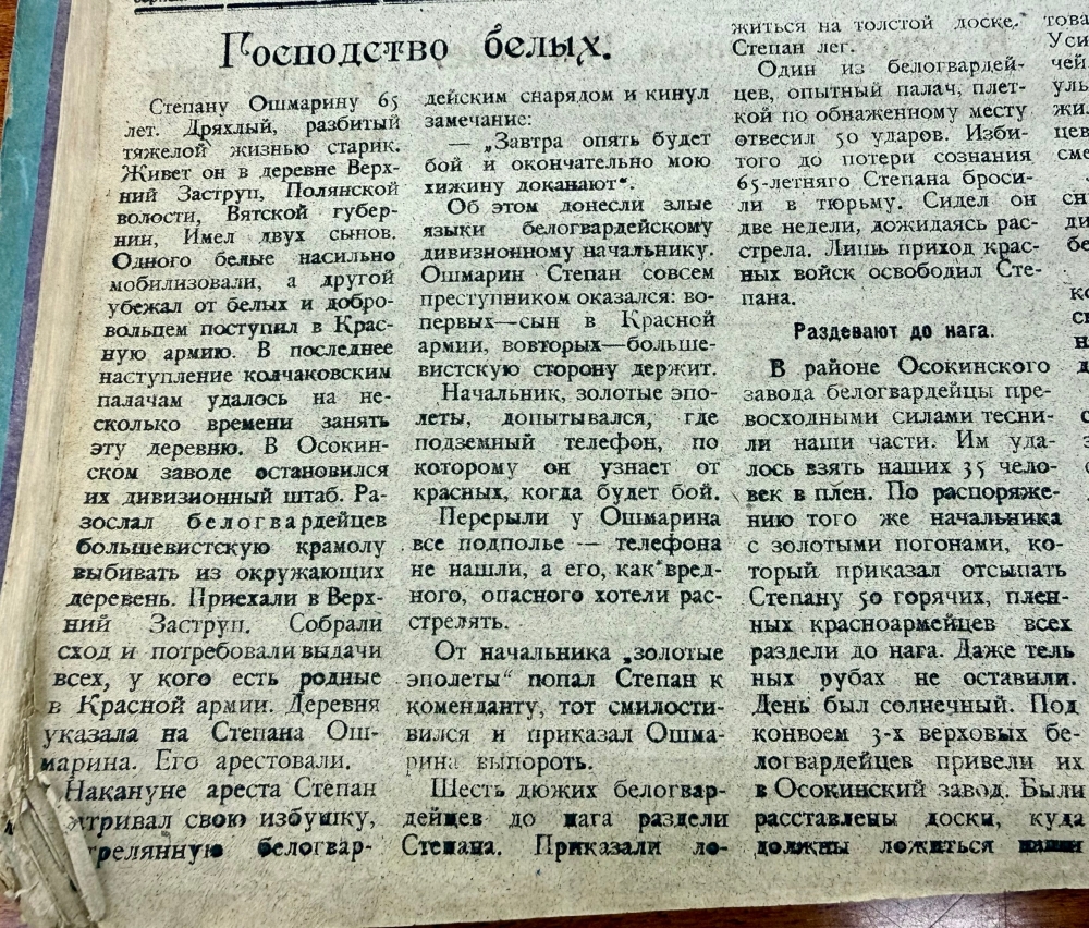Использованы публикации из печати советских газет Вятской губернии 1919 года