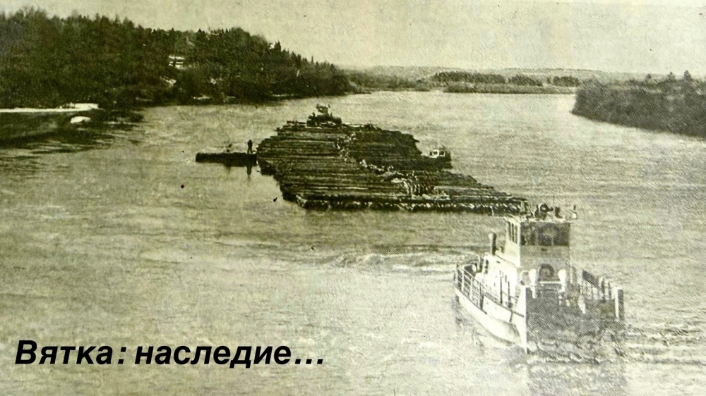 Из истории вятского судоходства. 1990 год. Первый плот на реке Моломе на буксире теплохода "Аркуль"
