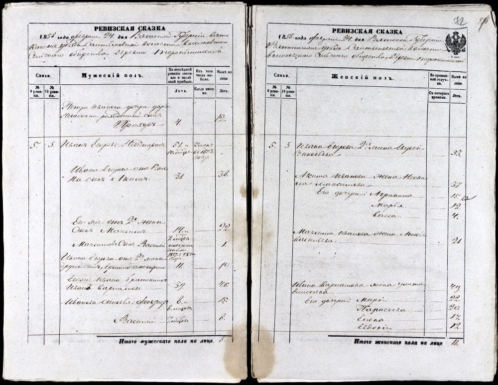 На сканах: исповедные росписи по некоторым деревням Яранского уезда. ЦГАКО ф.237 оп.71 д. 899 и 901 за 1837 и 1843 годы