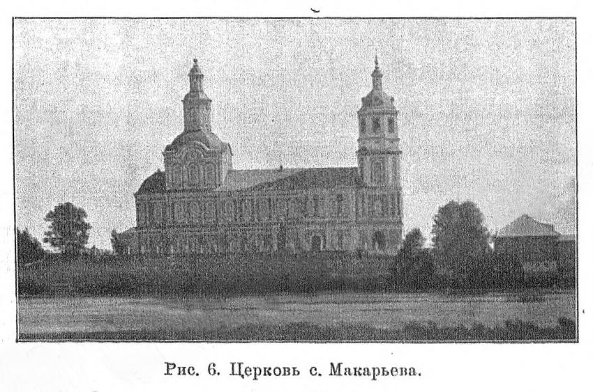 Село Макарьевское Котельничского уезда, 1851 год. В приходе сей же церкви существуют 2 деревянные часовни, обе построенные с незапамятных времен. Одна длиной 11,2 и шириной 7 ½ ар., прочна, без украшения внутри, и при которой августа 18 дня бывает собрание прихожан не более 50 человек из ближайших селений. Другая на столбах длиной 6 и шириной 6 ар., но при которой в первое воскресенье после Петрова дня бывает собр не менее 100 человек, для отправления молебствий по случаю прибытия в оную местных икон.