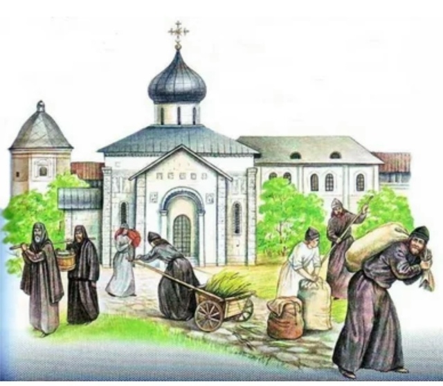 Примечание. Часто, чтобы уладить бесконечные земельные распри между монастырями, местные власти делали это по своему усмотрению, отдавая спорные земли тому или другому монастырю. Тогда жалобы шли уже напрямую московским царям, причем нередко от местных крестьян, которые из вольных хлебопашцев становились крепостными какого-нибудь монастыря. Екатерина Вторая решила эти проблемные споры одним росчерком пера... Рисунок Татьяны Дедовой