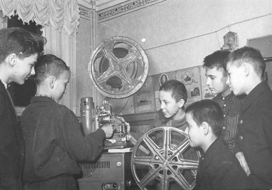 На снимке: ребята тех лет с интересом рассматривают киноаппаратуру. Может кто-то из них про себя уже решил посвятить свою жизнь кино. Профессия ведь действительно была интересная