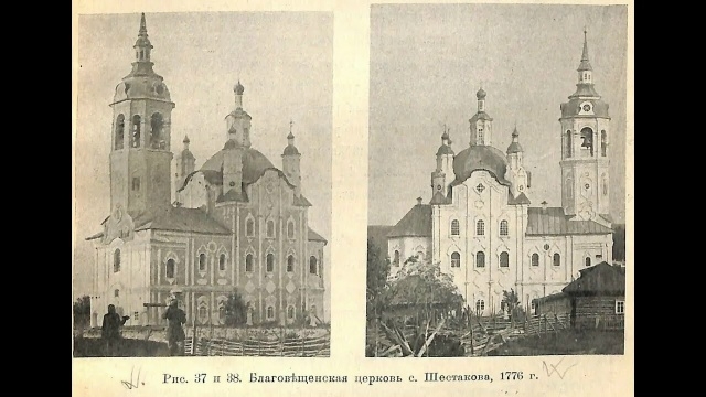 На фото: каменная Благовещенская церковь в городе Шестакове, построенная уже после описанных событий. В те времена в Шестакове стояли две деревянные церквушки...