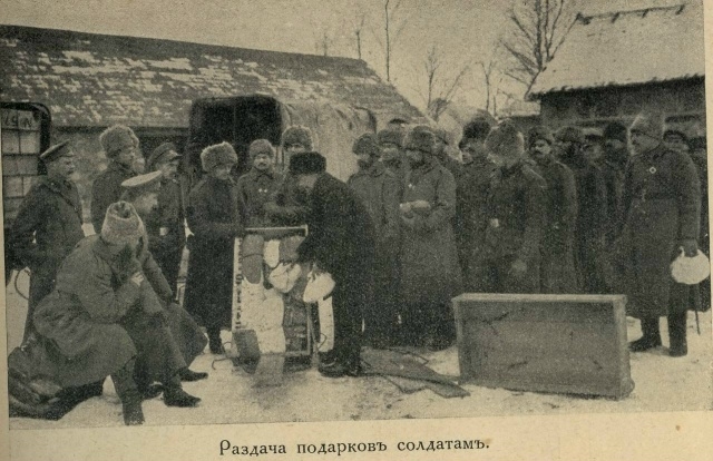 Препровождая 15 подарков к Пасхе воинам действующей армии на сумму 15 руб., покорнейше прошу Вас, Ваше Высокоблагословение, переслать их по назначению. В каждом подарке заключаются следующие вещи: утиральное полотно, чай, сахар, мыло, иголки, нитки, конфекты, конверты, почтовая бумага, карандаш, табак, спички, курительная бумага, папиросы, сушки, кроме того, в четырех подарках по 1 паре подверток и в двух – по кисету.