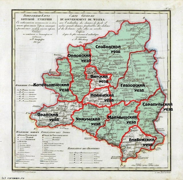 На картах: Вятская губерния до 1917 года и на 1926 год