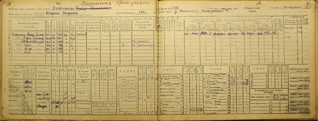 Обратите внимание - семья из 9 человек, из которых всего двое трудоспособные, и семеро по лавкам - четверо малых детей и трое стариков, видимо совсем ветхих, если даже советская власть посчитала их нетрудоспособными. Да и хозяин уже не юный - 56 лет, второй дееспособный взрослый, видимо, мать детей, которая должна ухаживать за всеми семерыми и за скотиной. И на всех одна лошадь, две коровы и две овцы. И все поражены в правах, лишенцы без всяких прав, с одними обязанностями. И платят денежный оброк власти. Портрет лютых кулаков-мироедов, заэксплуатировавших всю округу, очевидно. Что стало с ними, когда государство рабочих и крестьян их раскулачило?